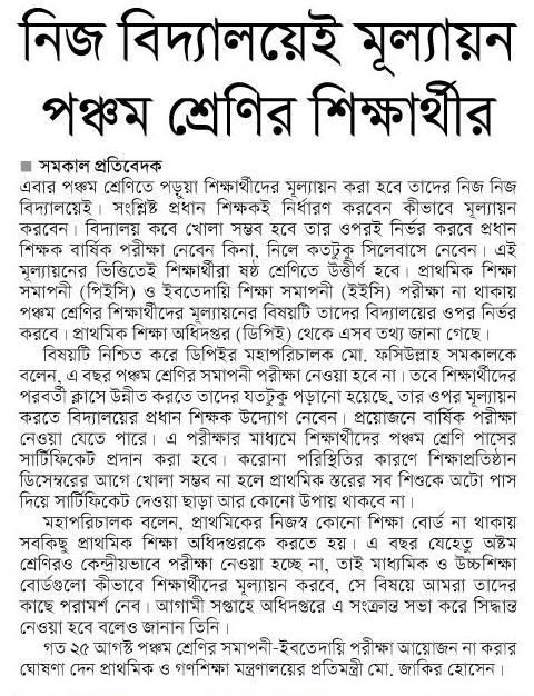 নিজ বিদ্যালয়েই মূল্যায়ন পঞ্চম শ্রেণির শিক্ষার্থীর ( ডিপিই )