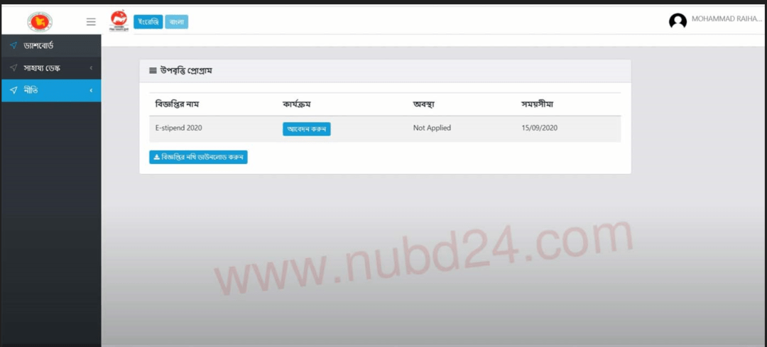 This way you can initially register online for the Student scholarship, after registration, you can log in. After login, by giving your registration number and password you will see this dashboard.