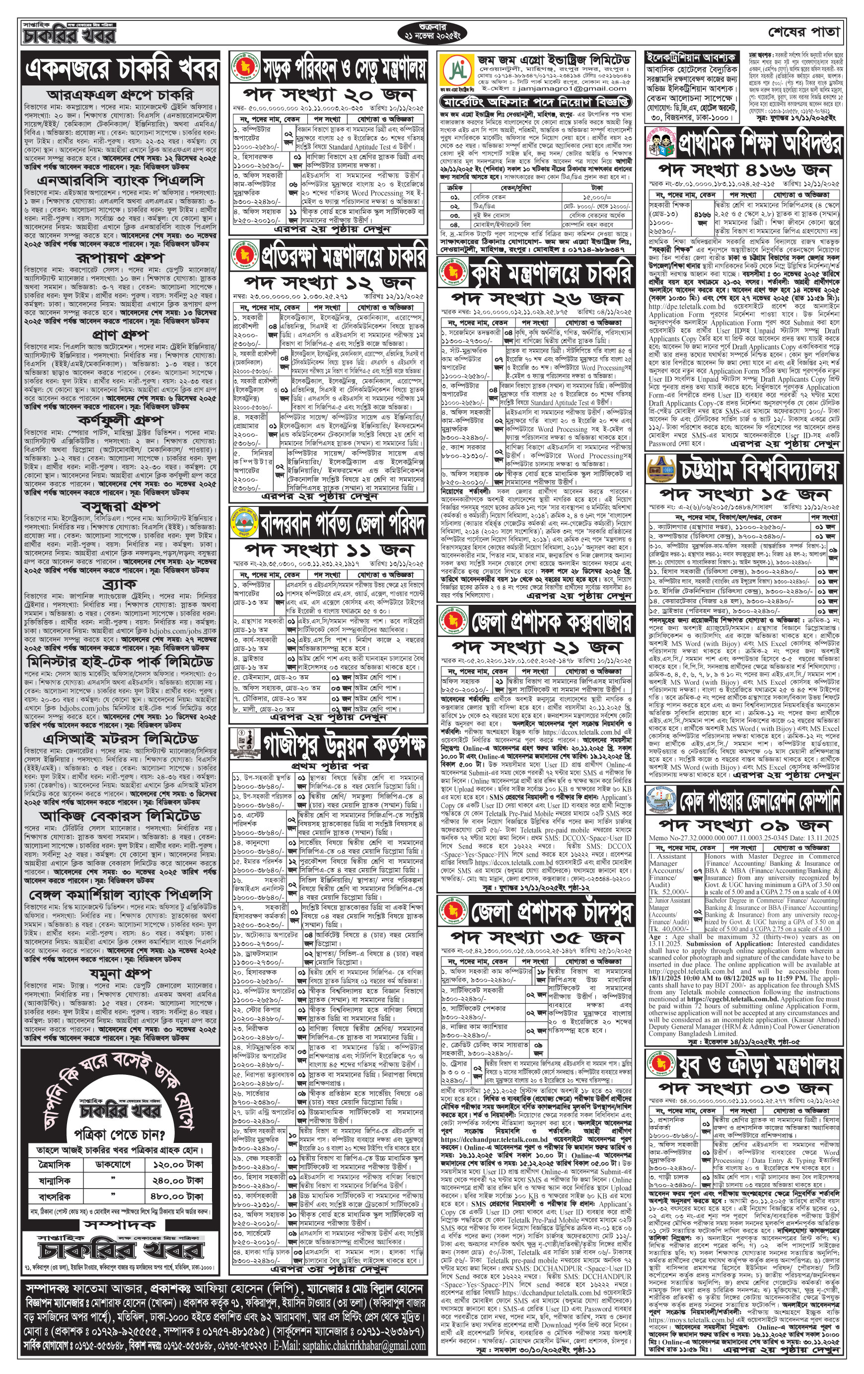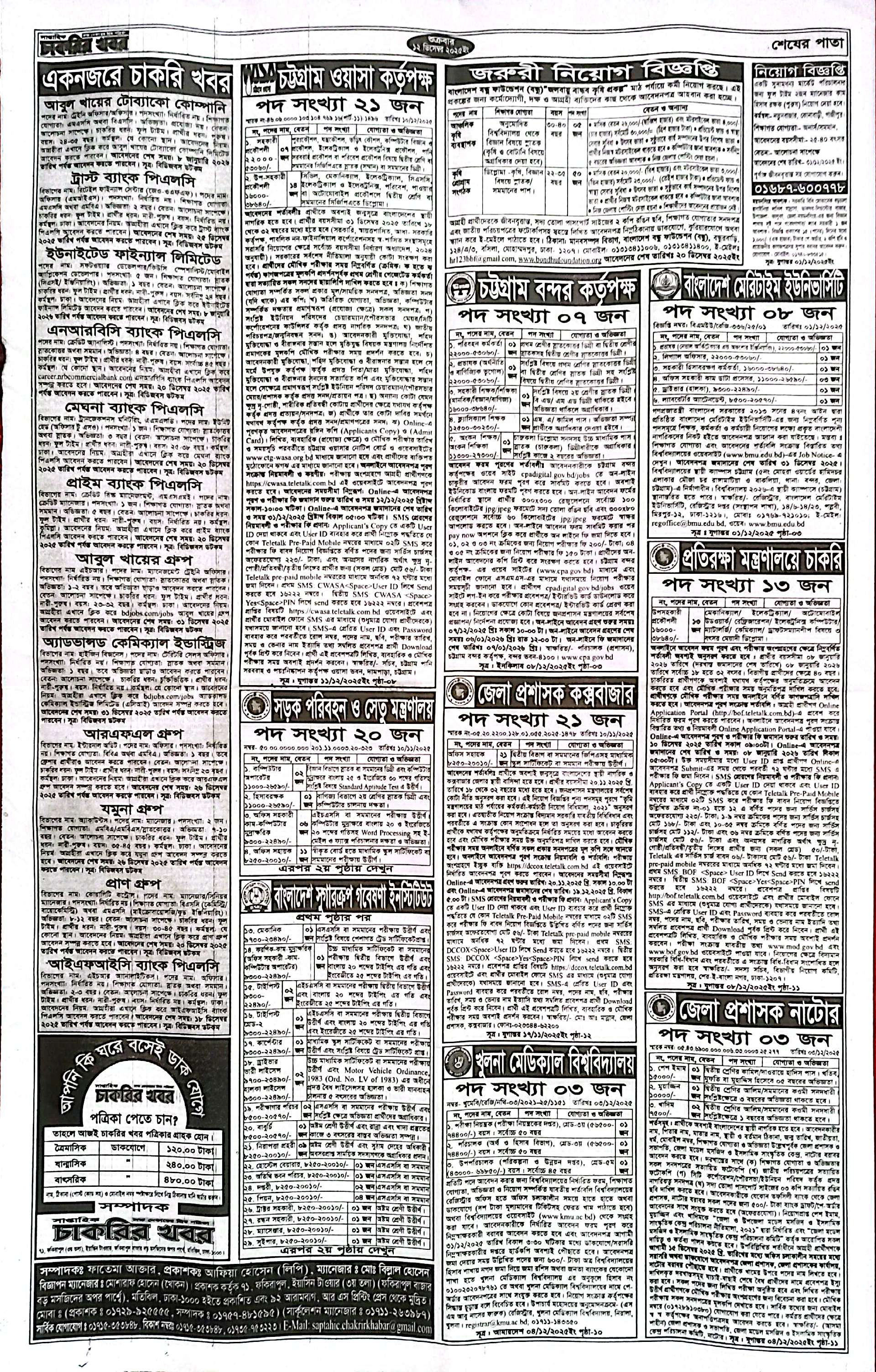 Saptahik Chakrir Khobor is a popular weekly newspaper in Bangladesh that focuses on job circulars and employment news. It is primarily aimed at job seekers who are looking for job opportunities in both the private and government sectors.In addition to job vacancies, Saptahik Chakrir Khobor also covers news and articles related to career development, job market trends, and employment-related policies and regulations. The newspaper also includes articles on education, lifestyle, and current affairs. Download PDF.