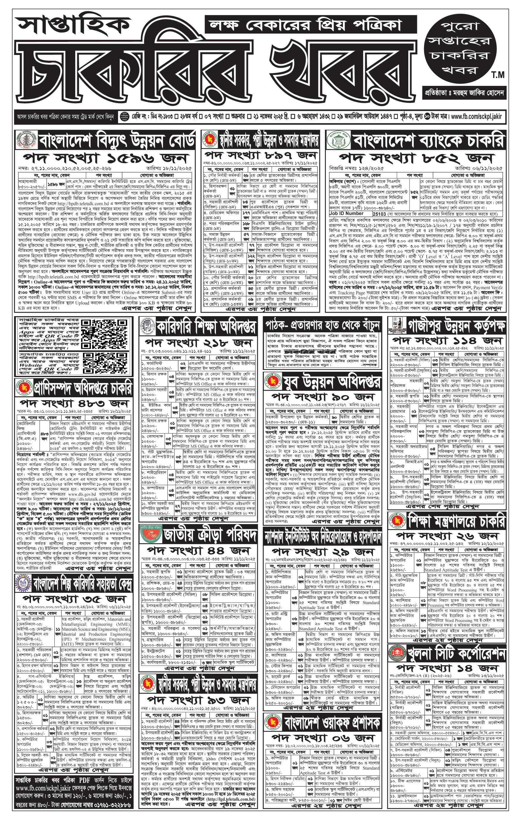 Weekly Job News Paper 01 March 2024 Download PDF has been published. Weekly News Paper 01 September 2023 Download PDF has been published. Saptahik Chakrir Khobor is a popular Bangladeshi Weekly Job News Paper that focuses on job news and information. The newspaper is published every Friday and provides a comprehensive list of job vacancies in various industries and sectors throughout Bangladesh.